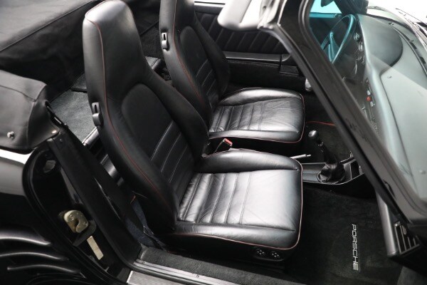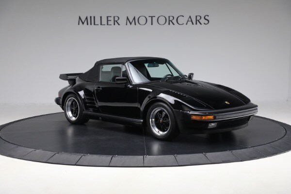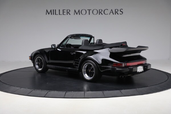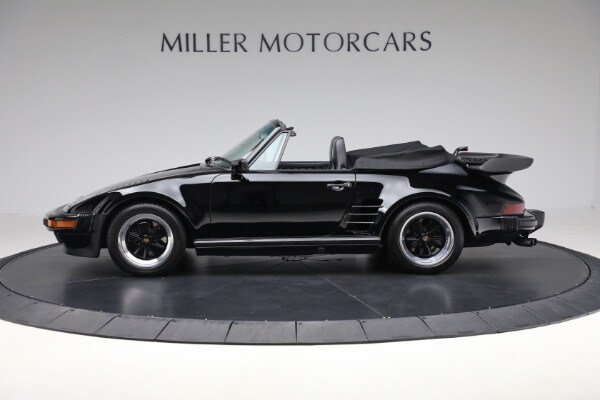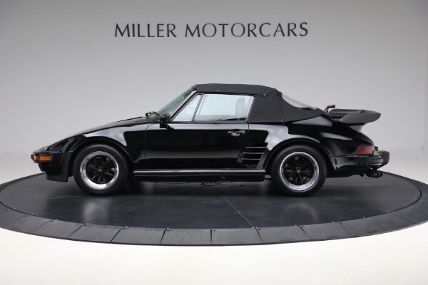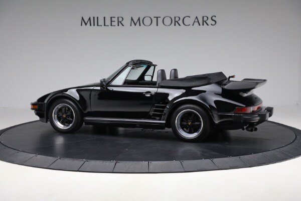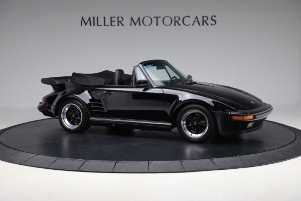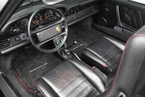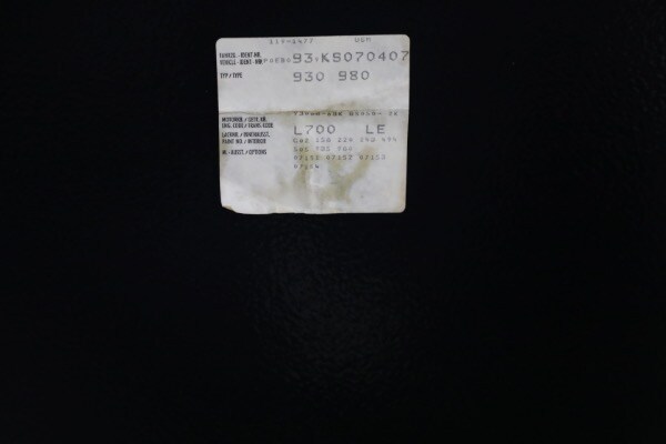 According to the Porsche-issued Certificate of Authenticity on file, this 930 was completed at the Zuffenhausen Porsche works on February 23, 1989. The new Cabriolet was fitted with the factory Slant Nose option ($28,000) and G50 transaxle, painted and trimmed in black, and optioned with Blaupunkt Reno radio, limited slip differential, a shorter gear shift lever, amplifier system, supple leather seats and Goodyear tires. The car was equipped for the US market and has remained here since.